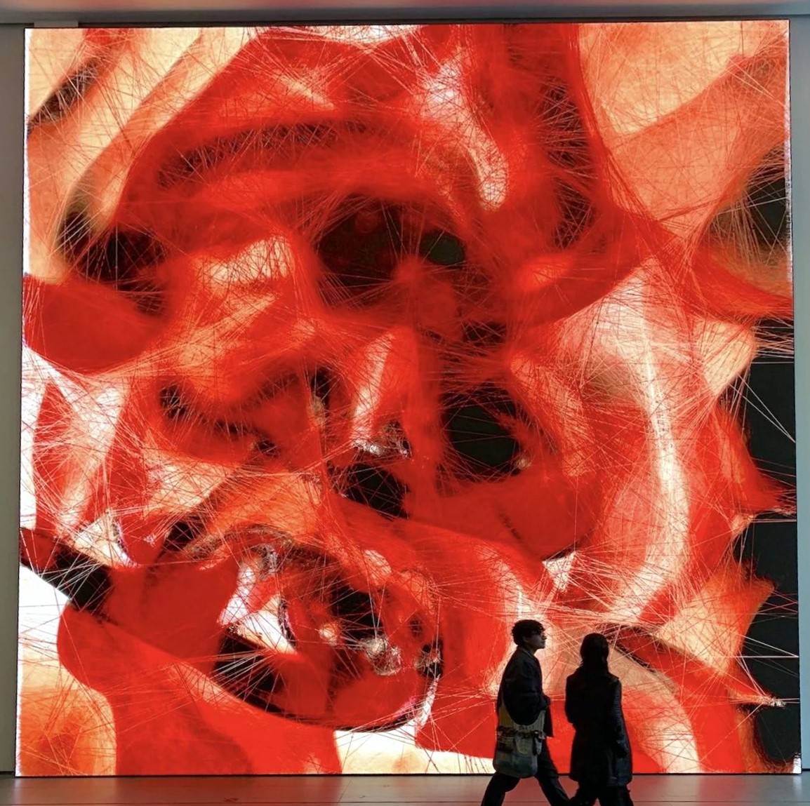 Anadols riesige Videowand, auf der eine KI ausgehend von der